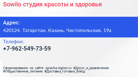 Sowilo, студия красоты и здоровья по адресу 420124, Татарстан, Казань, Чистопольская, 19а в дальнейшем Организация, размещена в следующих категориях: