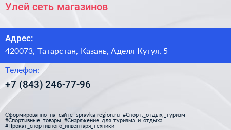 Улей, сеть магазинов по адресу 420073, Татарстан, Казань, Аделя Кутуя, 5 в дальнейшем Организация, размещена в следующих категориях:
