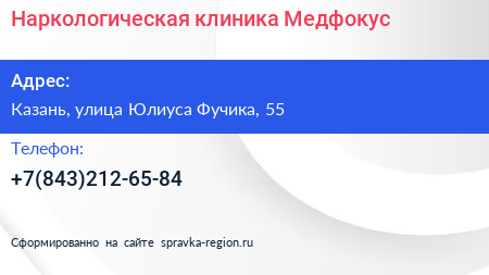 Наркологическая клиника «Медфокус» по адресу Казань, улица Юлиуса Фучика, 55 в дальнейшем Организация, размещена в следующих категориях: