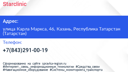 Starclinic по адресу улица Карла Маркса, 46, Казань, Республика Татарстан (Татарстан) в дальнейшем Организация, размещена в следующих категориях: