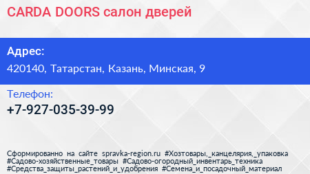 CARDA DOORS, салон дверей по адресу 420140, Татарстан, Казань, Минская, 9 в дальнейшем Организация, размещена в следующих категориях: