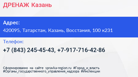 ДРЕНАЖ Казань по адресу 420095, Татарстан, Казань, Восстания, 100 к231 в дальнейшем Организация, размещена в следующих категориях: