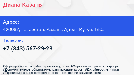 Диана Казань по адресу 420087, Татарстан, Казань, Аделя Кутуя, 160а в дальнейшем Организация, размещена в следующих категориях: