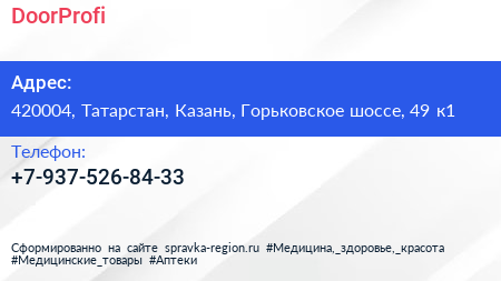 DoorProfi по адресу 420004, Татарстан, Казань, Горьковское шоссе, 49 к1 в дальнейшем Организация, размещена в следующих категориях: