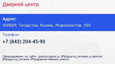 Дверной центр по адресу 420029, Татарстан, Казань, Журналистов, 103 в дальнейшем Организация, размещена в следующих категориях: