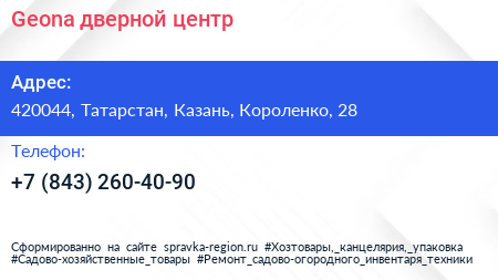 Geona, дверной центр по адресу 420044, Татарстан, Казань, Короленко, 28 в дальнейшем Организация, размещена в следующих категориях: