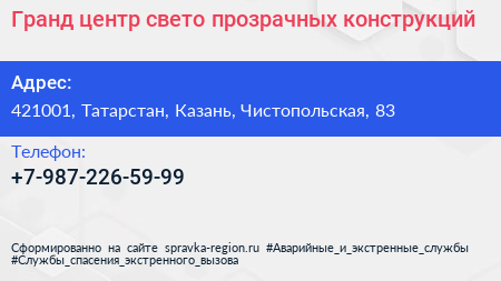 Гранд, центр свето-прозрачных конструкций по адресу 421001, Татарстан, Казань, Чистопольская, 83 в дальнейшем Организация, размещена в следующих категориях: