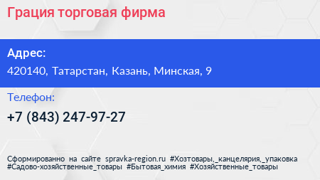 Грация, торговая фирма по адресу 420140, Татарстан, Казань, Минская, 9 в дальнейшем Организация, размещена в следующих категориях: