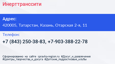 Инерттранссити по адресу 420005, Татарстан, Казань, Отарская 2-я, 11 в дальнейшем Организация, размещена в следующих категориях: