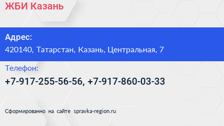 ЖБИ-Казань по адресу 420140, Татарстан, Казань, Центральная, 7 в дальнейшем Организация, размещена в следующих категориях: