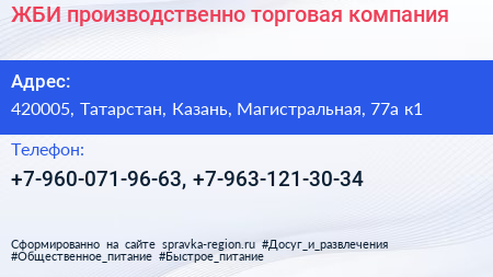 ЖБИ, производственно-торговая компания по адресу 420005, Татарстан, Казань, Магистральная, 77а к1 в дальнейшем Организация, размещена в следующих категориях: