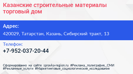 Казанские строительные материалы, торговый дом по адресу 420029, Татарстан, Казань, Сибирский тракт, 13 в дальнейшем Организация, размещена в следующих категориях: