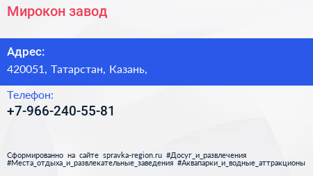 Мирокон, завод по адресу 420051, Татарстан, Казань, в дальнейшем Организация, размещена в следующих категориях: