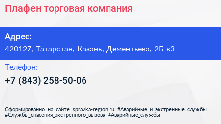 Плафен, торговая компания по адресу 420127, Татарстан, Казань, Дементьева, 2Б к3 в дальнейшем Организация, размещена в следующих категориях:
