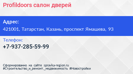 Profildoors, салон дверей по адресу 421001, Татарстан, Казань, проспект Ямашева, 93 в дальнейшем Организация, размещена в следующих категориях: