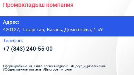Промвкладыш, компания по адресу 420127, Татарстан, Казань, Дементьева, 1 к9 в дальнейшем Организация, размещена в следующих категориях: