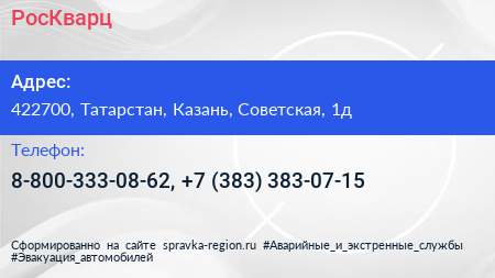 РосКварц по адресу 422700, Татарстан, Казань, Советская, 1д в дальнейшем Организация, размещена в следующих категориях: