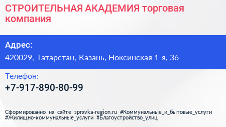 СТРОИТЕЛЬНАЯ АКАДЕМИЯ, торговая компания по адресу 420029, Татарстан, Казань, Ноксинская 1-я, 36 в дальнейшем Организация, размещена в следующих категориях: