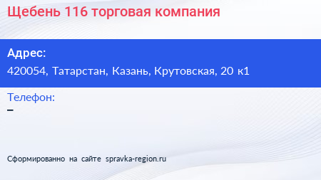 Щебень 116, торговая компания по адресу 420054, Татарстан, Казань, Крутовская, 20 к1 в дальнейшем Организация, размещена в следующих категориях: