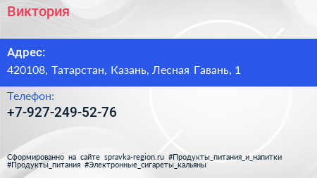 Виктория по адресу 420108, Татарстан, Казань, Лесная Гавань, 1 в дальнейшем Организация, размещена в следующих категориях: