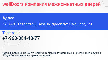wellDoors, компания межкомнатных дверей по адресу 421001, Татарстан, Казань, проспект Ямашева, 93 в дальнейшем Организация, размещена в следующих категориях: