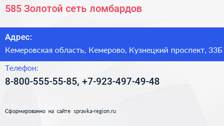 585*Золотой, сеть ломбардов по адресу Кемеровская область, Кемерово, Кузнецкий проспект, 33Б в дальнейшем Организация, размещена в следующих категориях: