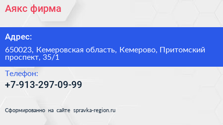 Аякс, фирма по адресу 650023, Кемеровская область, Кемерово, Притомский проспект, 35/1 в дальнейшем Организация, размещена в следующих категориях: