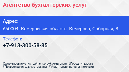 Агентство бухгалтерских услуг по адресу 650004, Кемеровская область, Кемерово, Соборная, 8 в дальнейшем Организация, размещена в следующих категориях: