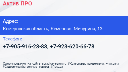Актив-ПРО по адресу Кемеровская область, Кемерово, Мичурина, 13 в дальнейшем Организация, размещена в следующих категориях:
