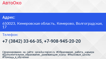 АвтоОко по адресу 650023, Кемеровская область, Кемерово, Волгоградская, 17 в дальнейшем Организация, размещена в следующих категориях: