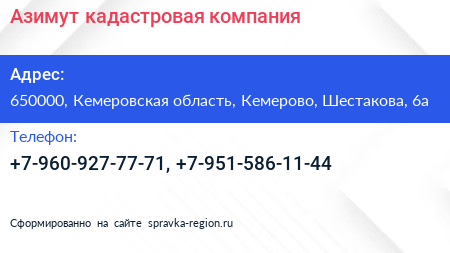 Азимут, кадастровая компания по адресу 650000, Кемеровская область, Кемерово, Шестакова, 6а в дальнейшем Организация, размещена в следующих категориях: