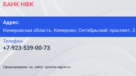 БАНК НФК по адресу Кемеровская область, Кемерово, Октябрьский проспект, 2 в дальнейшем Организация, размещена в следующих категориях: