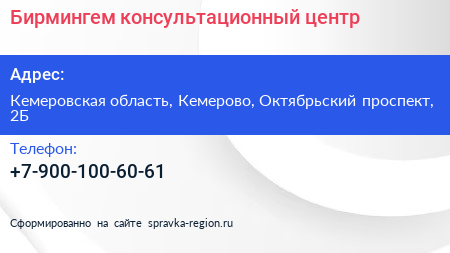 Бирмингем, консультационный центр по адресу Кемеровская область, Кемерово, Октябрьский проспект, 2Б в дальнейшем Организация, размещена в следующих категориях:
