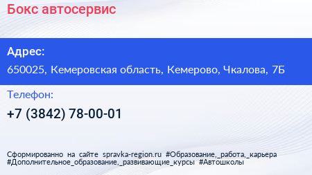Бокс, автосервис по адресу 650025, Кемеровская область, Кемерово, Чкалова, 7Б в дальнейшем Организация, размещена в следующих категориях:
