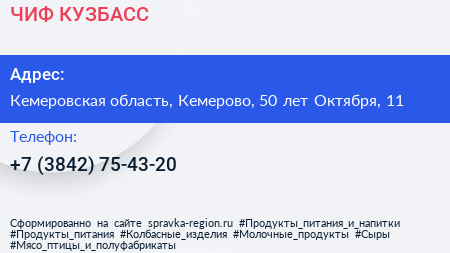 ЧИФ-КУЗБАСС по адресу Кемеровская область, Кемерово, 50 лет Октября, 11 в дальнейшем Организация, размещена в следующих категориях: