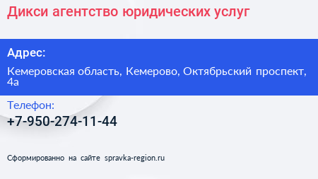 Дикси, агентство юридических услуг по адресу Кемеровская область, Кемерово, Октябрьский проспект, 4а в дальнейшем Организация, размещена в следующих категориях: