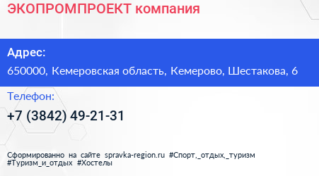 ЭКОПРОМПРОЕКТ, компания по адресу 650000, Кемеровская область, Кемерово, Шестакова, 6 в дальнейшем Организация, размещена в следующих категориях: