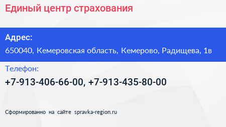 Единый центр страхования по адресу 650040, Кемеровская область, Кемерово, Радищева, 1в в дальнейшем Организация, размещена в следующих категориях: