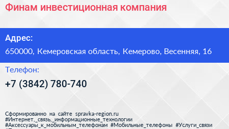 Финам, инвестиционная компания по адресу 650000, Кемеровская область, Кемерово, Весенняя, 16 в дальнейшем Организация, размещена в следующих категориях: