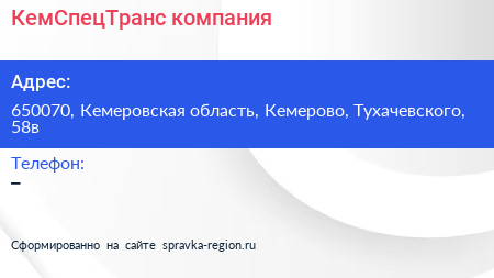 КемСпецТранс, компания по адресу 650070, Кемеровская область, Кемерово, Тухачевского, 58в в дальнейшем Организация, размещена в следующих категориях: