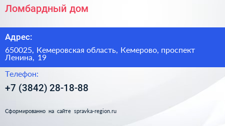 Ломбардный дом по адресу 650025, Кемеровская область, Кемерово, проспект Ленина, 19 в дальнейшем Организация, размещена в следующих категориях: