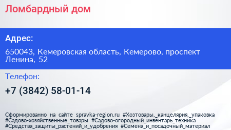 Ломбардный дом по адресу 650043, Кемеровская область, Кемерово, проспект Ленина, 52 в дальнейшем Организация, размещена в следующих категориях:
