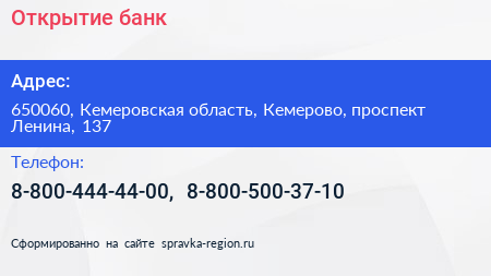 Открытие, банк по адресу 650060, Кемеровская область, Кемерово, проспект Ленина, 137 в дальнейшем Организация, размещена в следующих категориях: