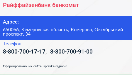 Райффайзенбанк, банкомат по адресу 650066, Кемеровская область, Кемерово, Октябрьский проспект, 34 в дальнейшем Организация, размещена в следующих категориях: