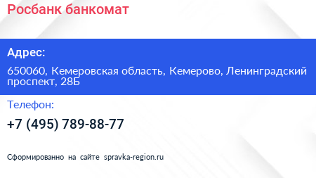 Росбанк, банкомат по адресу 650060, Кемеровская область, Кемерово, Ленинградский проспект, 28Б в дальнейшем Организация, размещена в следующих категориях:
