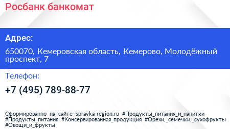 Росбанк, банкомат по адресу 650070, Кемеровская область, Кемерово, Молодёжный проспект, 7 в дальнейшем Организация, размещена в следующих категориях: