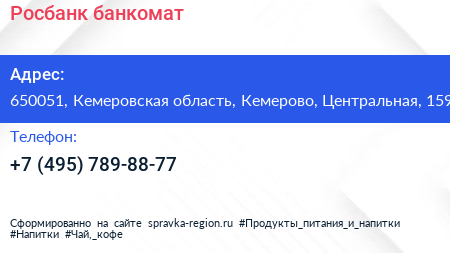 Росбанк, банкомат по адресу 650051, Кемеровская область, Кемерово, Центральная, 159 в дальнейшем Организация, размещена в следующих категориях: