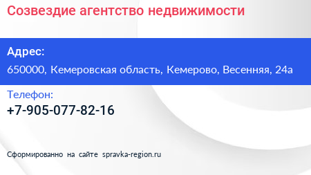 Созвездие, агентство недвижимости по адресу 650000, Кемеровская область, Кемерово, Весенняя, 24а в дальнейшем Организация, размещена в следующих категориях: