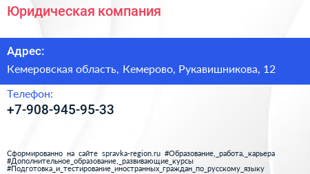 Юридическая компания по адресу Кемеровская область, Кемерово, Рукавишникова, 12 в дальнейшем Организация, размещена в следующих категориях: