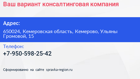 Ваш вариант, консалтинговая компания по адресу 650024, Кемеровская область, Кемерово, Ульяны Громовой, 15 в дальнейшем Организация, размещена в следующих категориях: